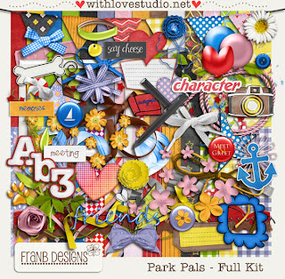 FranB Desings met haar nieuwste kit: Park Pals. Is dit geen vrolijke kit? Ik wordt er in ieder geval helemaal blij van. En... hij is groot, zeker als je haar freebies ook er bij zoekt. Die zijn te vinden op haar